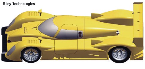>>On Tuesday I met with Bill Riley at Riley Technologies as part of continuing research on the Intrepid GTP. Bill was kind enough to let me have a look at the ongoing development of the new Riley LMP and I've been allowed to give my first hand impressions of what I saw on the CAD screen. For starters, the version I was allowed to view is closed top. The front end is striking with cooling inlets either side of the leading edge of the cockpit and a very prominent Bentley-esque nose/crash structure. Radiators are mounted in the side pods and appear to exhaust out the engine bay. The front splitter has the mandatory raised section and exhausts out shuttered exits just aft of the front wheels. The cockpit shape itself is the as expected teardrop conforming to the mandated, template-driven, virtual hardpoints. The engine exhaust exits out the top of the car through an opening that pokes out the trailing edge of the cockpit teardrop. All very neat looking. Although not particularly prominent and perhaps it was just my impression, but the sidepods seem to be slightly offset inboard thus allowing for a small wheel arch bulge at the leading edge of the rear wheel well (as well as a small portion of exposed side splitter area running down the side of the car). The rear engine deck and bodywork is extraordinarily low and is highlighted by the very large amount of exposed inboard rear fender surface area. The version I was shown still hadn't been detailed and it was admitted that blisters to contain the suspension would be added into the rear bodywork, further highlighting how low the rear deck actually is. The rear fenders are unique in that they are pontoon shaped in planform. Engine intakes (in this case the installation was a turbo V8) are located in front of the rear wheel fenders in a similar position (and intake shape) as on the Audi R8. Overall the new car is visually reminiscent of previous Riley products with certain profiles evoking the MkIIIC in elevation and planform. For now interest is building and Bill mentions that the car will be LMP2 compliant if being slightly more difficult to meet the LMP2 750 kgs weight. A image will be released in the next few coming weeks. |